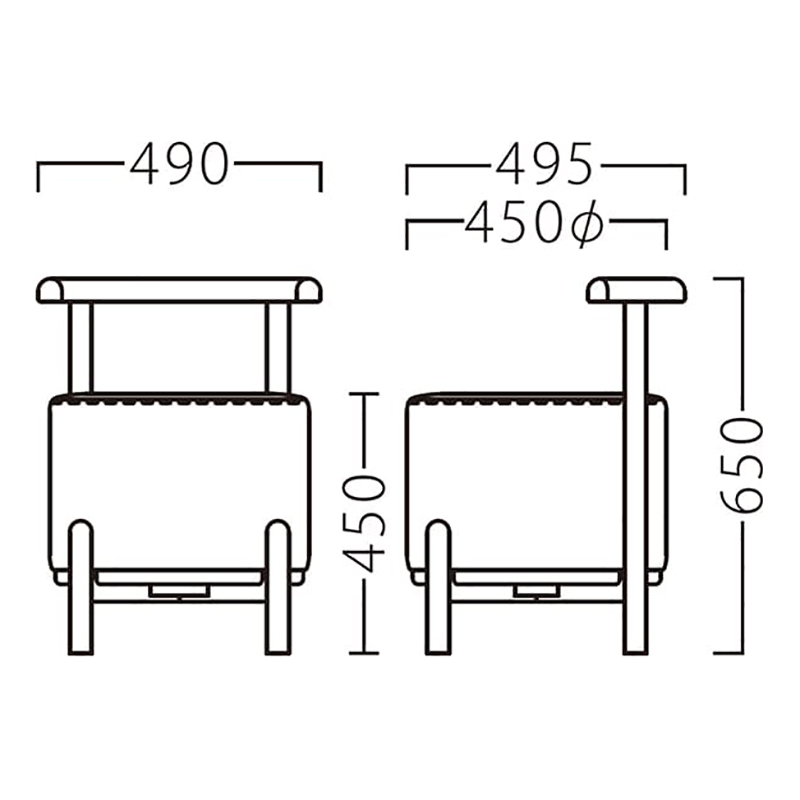 | サイズ | W490×D495×H650(SH450) |
