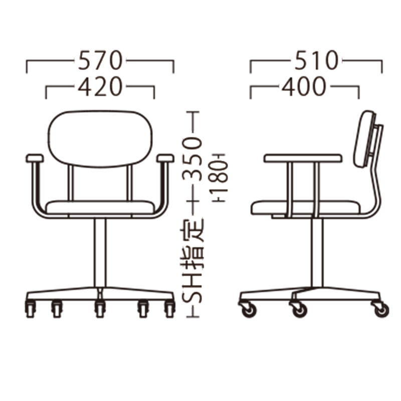 | サイズ | W570×D510×H700~800(SH350~450) |