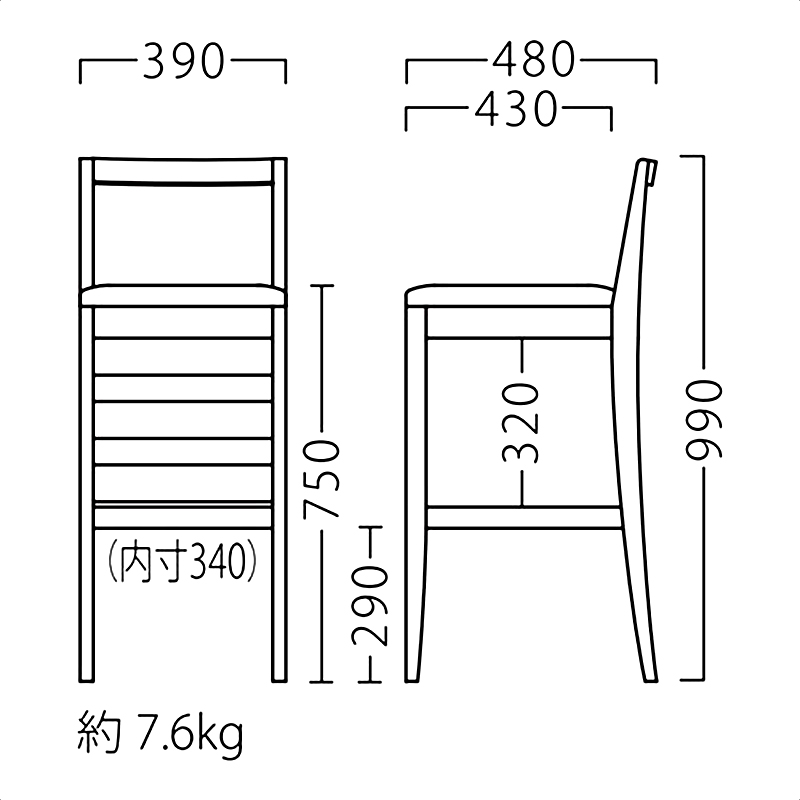 | サイズ | W390×D480×H990(SH750) |