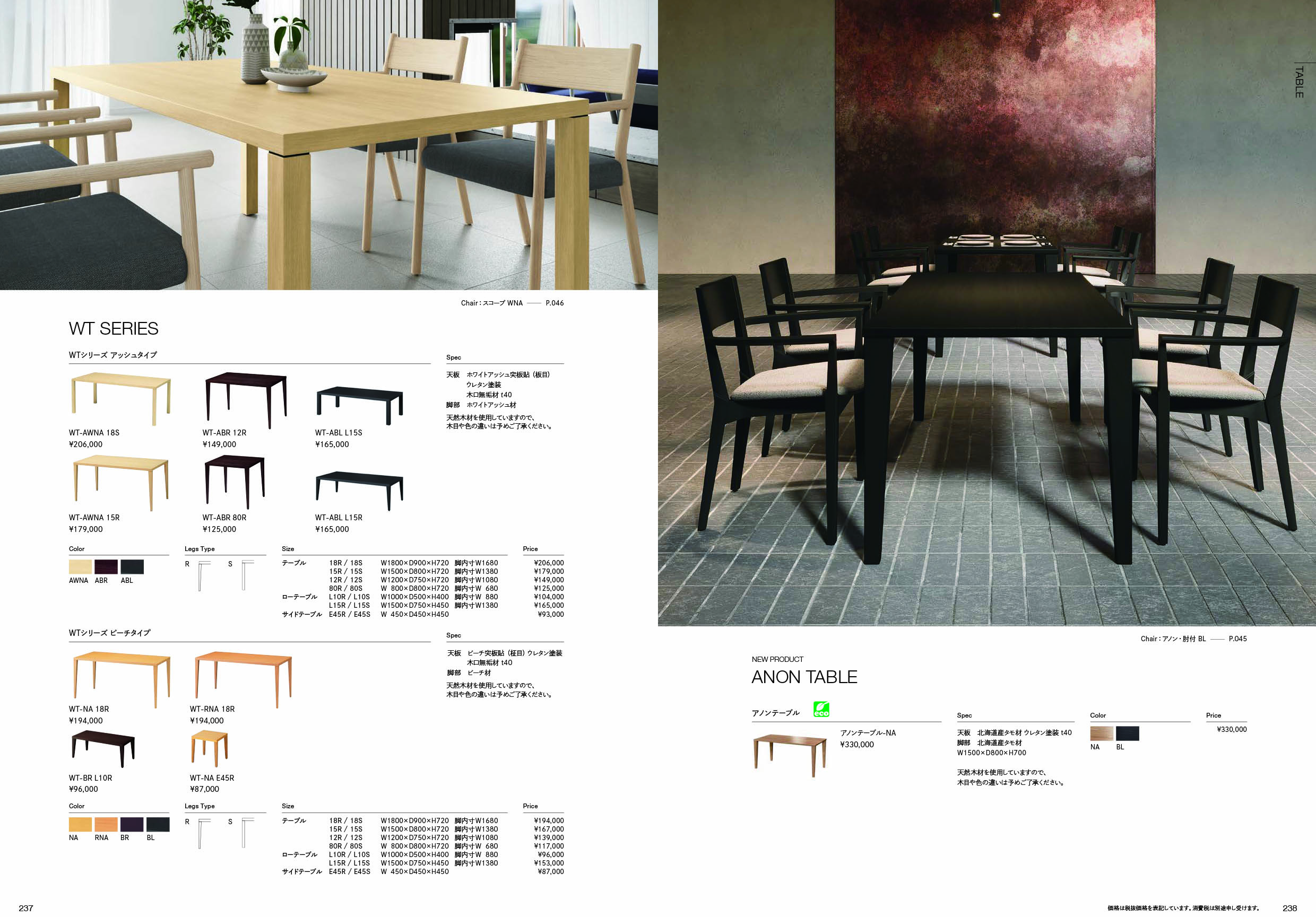 クリックで拡大します 商品名 WTシリーズ アッシュタイプ 18R/18S _ サイズW1800×D900×H720 仕様・数量を選択仕様または数量を選択してください。 カラー カラー選択→ 変更 クリックして選択 円(税込) - 脚部タイプ 脚部タイプ選択→ 変更 クリックして選択 円(税込) - 数量 価格 0円(税込) 戻る 【カラー】を選択してください AWNA ABR ABL 閉じる 【脚部タイプ】を選択してください R S 閉じる カタログ掲載ページ カタログとホームページ掲載内容に(価格以外の)差異がある場合は、カタログを優先します